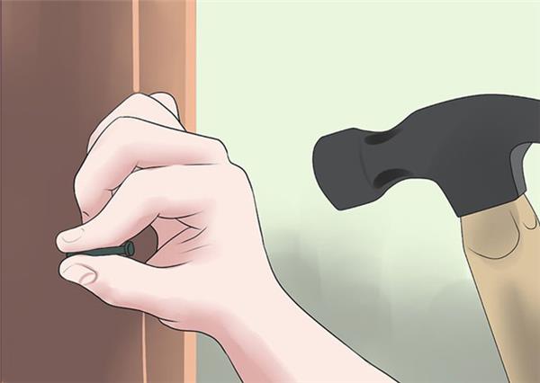 ۱۰. به پنل پشتی میخ بکوبید. یک پنل نیم اینچی به پشت کابینت اضافه کنید. برای کابینتهای دیواری پنل ضخیمتری مورد نیاز است، مثلاً 75/0 اینچی با جنس امدیاف.