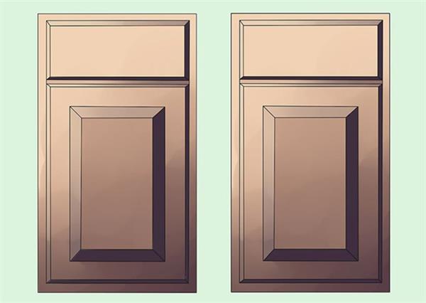 ۱۳. پنلهای روکش را اضافه کنید. پنلهای روکش را به مانند یک قاب عکس به هم متصل کنید. میتوانید از گیرههای مخصوص یا میتر استفاده کنید. از راههای مختلفی برای اتصال میتوان استفاده کرد و این موضوع بستگی به مهارتهای شما دارد. با استفاده از میخ و پیچ قسمت آماده شده را به کابینت متصل کنید.