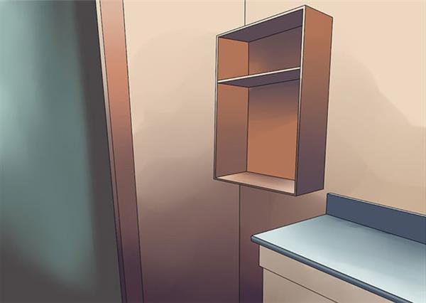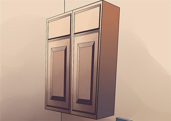 ۱۴. کابینت را در سر جای خود قرار دهید. کابینت را در محل مقرر خود قرار دهید. با استفاده از پیچ، پنلهای پشتی را به دیوار متصل و آنها را در جای خود محکم کنید. کابینتهای بالایی معمولاً به استحکام بیشتری نیاز دارند و لازم است تا در آنها از براکتهای Lشکل استفاده نمایید، خصوصاً اگر قصد داشته باشید تا وسایل سنگینی را بر روی آنها قرار دهید.