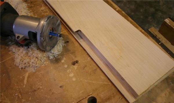 ایجاد یک شیاره ۲/۱ در ۴/۱ اینچی بر روی پنل ثانویه باعث میشود تا کار سریع تر پیش رود. به خاطر قطر بزرگ آن، بر روی روتر با سرعتهای متغیر کار کردم و پایین ترین سرعت چرخشی را نیز داشتم.