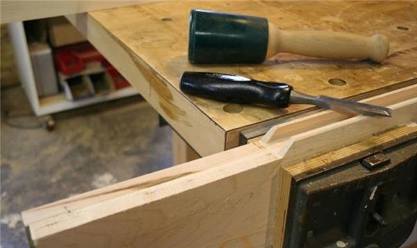 البته چندین کار تا پیش از سر هم کردن اصلی (چسباندن) باقی مانده است که باید آنها را نیز انجام دهیم. همان جوری که در سایهی سمت چپ در دیده میشود، ما یک شیار ۴/۳ اینچی داریم که برای قرار گرفتن پنل ۴/۱ اینچی در آن ایجاد شده است.